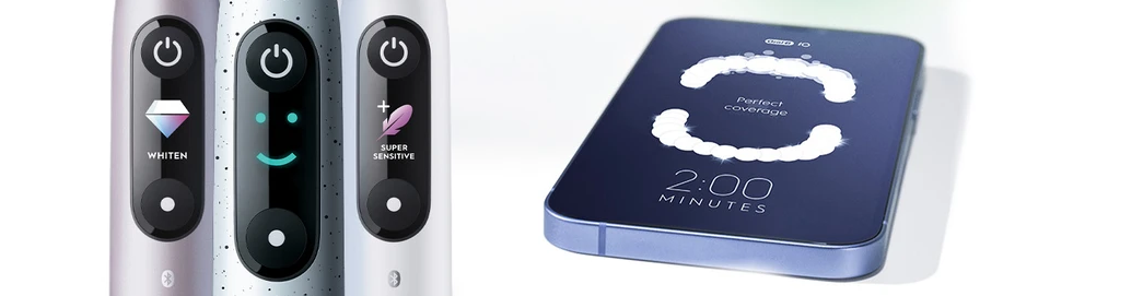 Úplne nová technológia iO sa nachádza na hranici sonickej a oscilačno-rotačnej technológie. Magnet v tele kefky vytvára oscilačno-rotačný pohyb s mikrovibráciami. Mikrovibrácie rozpohybujú hlavicu kefky, ktorá veľmi jemne, ale dôkladne odstráni povlak a iné nečistoty zo zubov aj z priestorov medzi nimi. Chod kefky je veľmi tichý a odozva vibrácií oveľa menšia než u predchádzajúcich modelov. Na interaktívnom farebnom displeji si môžete vybrať jeden zo siedmych režimov čistenia a skontrolujete si odporúčanú dobu čistenia vďaka dvojminútovému časovaču. V neposlednom rade zistíte stav nabitia batérie.