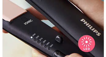Možnosť výberu teploty v rozsahu od 160 °C do 230 °C vám umožňuje si vždy pomocou prehľadného LED displeja vybrať ideálnu teplotu presne pre vaše vlasy. Zároveň budú vaše vlasy chránené, s minimálnym rizikom poškodenia.