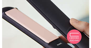 Dlhšie 100 mm platne umožňujú lepší kontakt s vlasmi a pomáhajú tak za kratší čas dosiahnuť dokonalé výsledky pri vyrovnávaní.