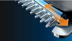 Zvládnite akýkoľvek typ vlasov vďaka výkonu pokročilej technológie DualCut: inovatívna obojstranná strihacia jednotka, ktorá vlasy zastrihuje dvakrát rýchlejšie ako jednostranný brit.