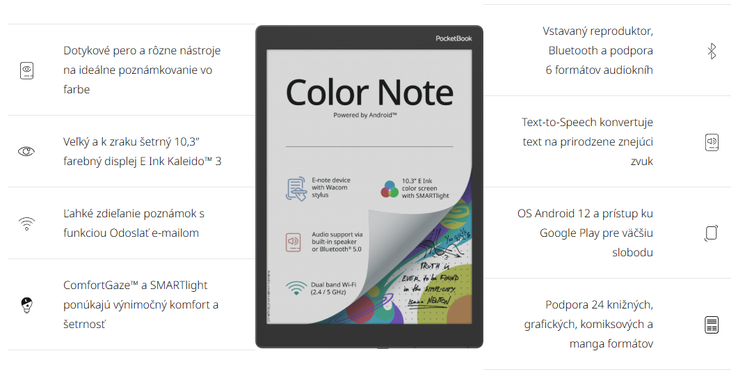 Kľúčové vlastnosti PocketBook 1041 Color Note Stormy Sea