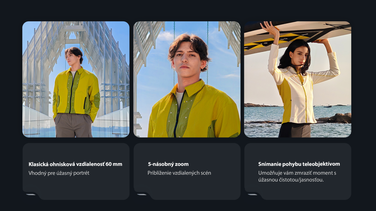 Staňte sa majstrom fotografie s týmto praktickým 50MP telefoto objektívom s klasickou 60mm ohniskovou vzdialenosťou, ideálnou pre dokonalé portréty. Vďaka 5x senzorickému zoomu priblížite aj vzdialené objekty. Využitie nájde aj v dynamických scénach, kedy vám umožní zachytiť dôležité okamihy s vysokou ostrosťou.