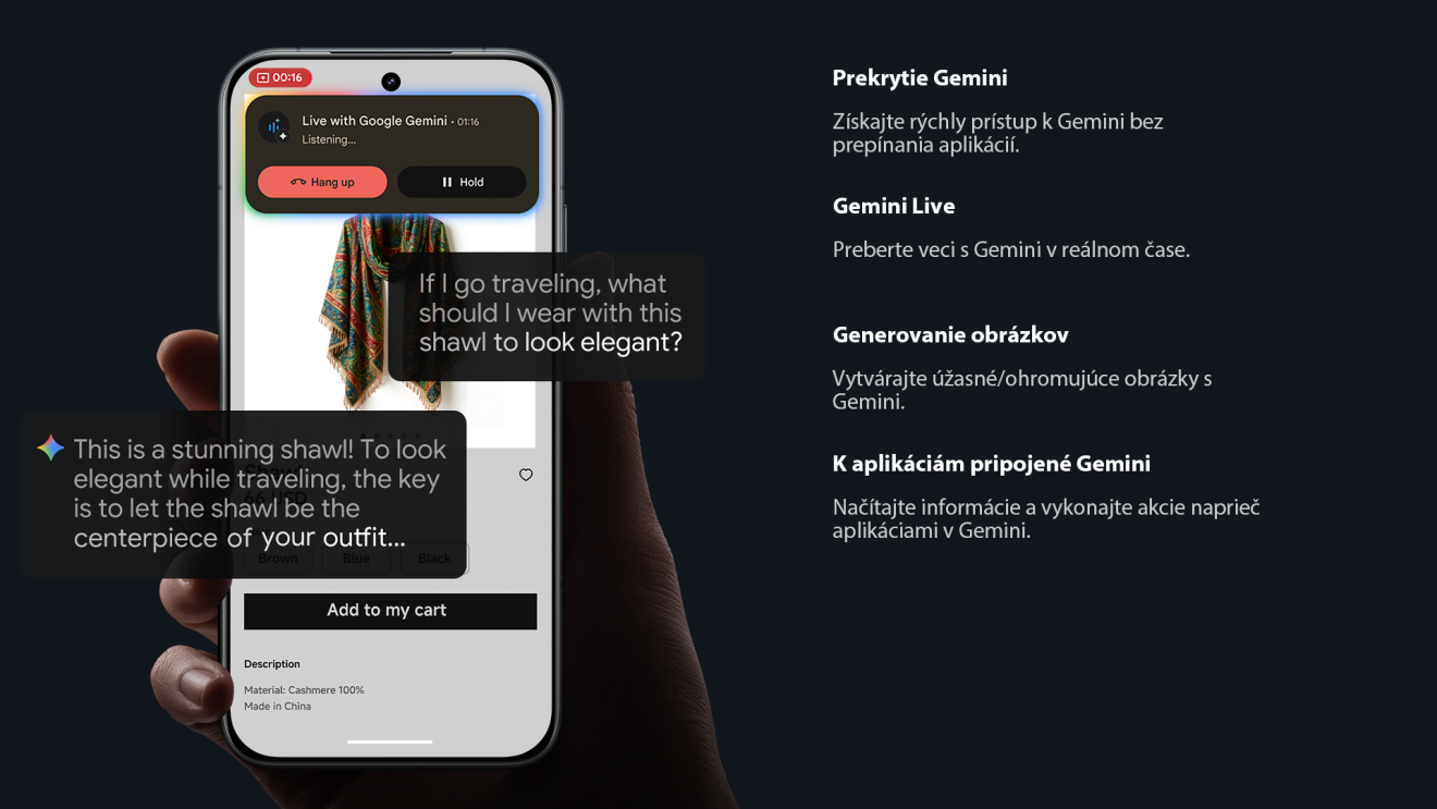 Chatujte so skutočne užitočným osobným AI asistentom Gemini a dodajte svojim nápadom nový rozmer. Súčasťou širokého balíka dostupných AI funkcii je aj populárne Circle to Search, vďaka ktorému okamžite vyhľadáte to, čo vidíte na svojom telefóne.
