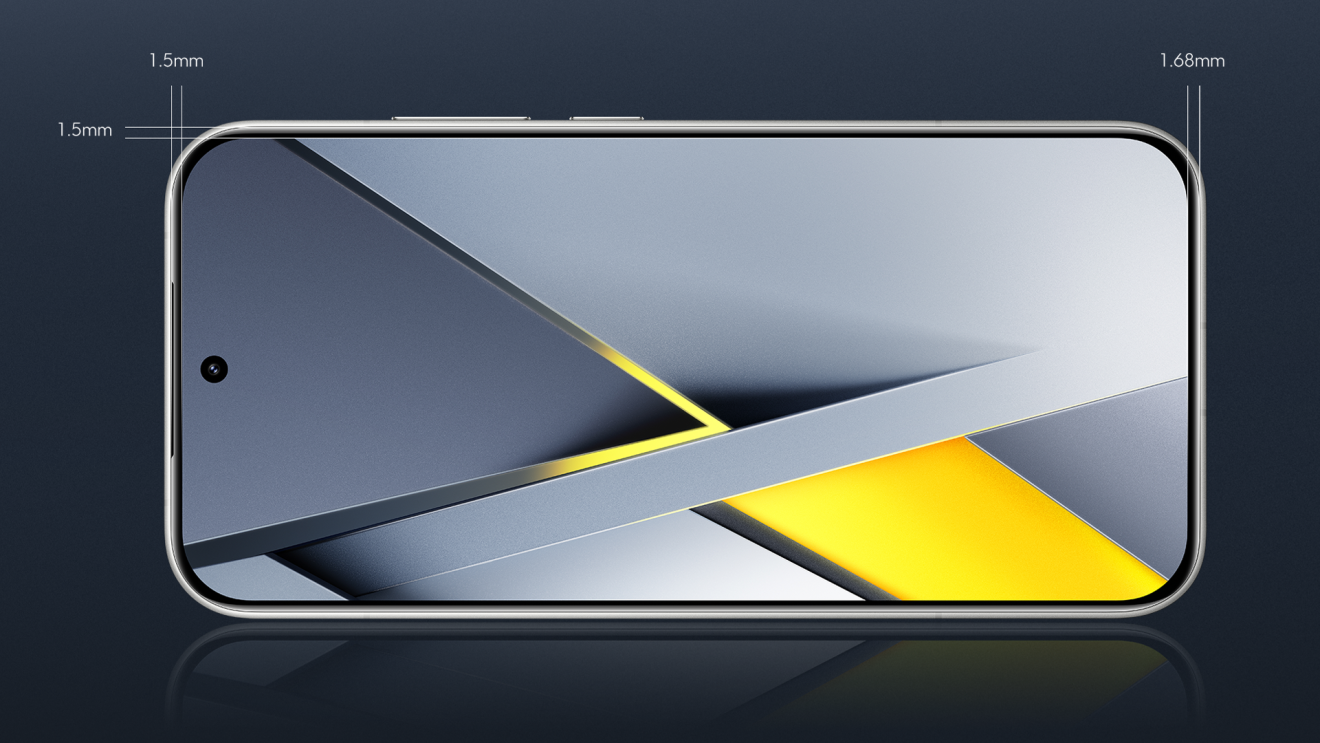 Ideálnu 6,59-palcovú veľkosť displeja lemujú mimoriadne tenké rámčeky s hrúbkou len 1,68mm, čo z nich robí najtenší rámček displeja aký POCO kedy malo. Spodný rámik osadeného displeja je len o 0,18mm hrubší. Vďaka tomu vytvára ilúziu takmer rovnomerných rámčekov po celom obvode displeja, čím prináša širšie zorné pole a intenzívnejší vizuálny zážitok.