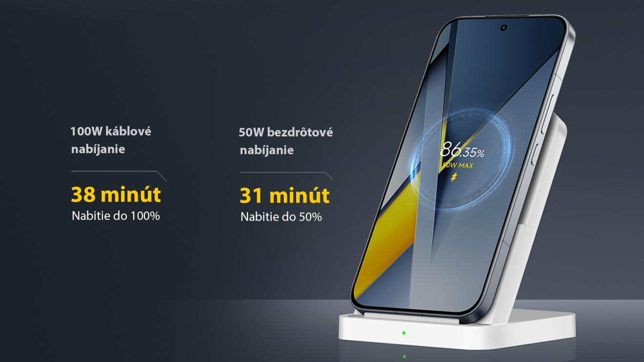 POCO F8 Ultra disponuje ultrarýchlym nabíjaním, ktoré zaručuje efektívnosť aj bezpečnosť. Podporuje tiež 100W univerzálny nabíjací protokol (PPS), ktorý zaisťuje širokú kompatibilitu s rôznymi rýchlonabíjačkami. *Bezdrôtové nabíjačky a nabíjacie adaptéry sa predávajú samostatne. Dostupnosť sa môže líšiť v závislosti od krajiny/regiónu.