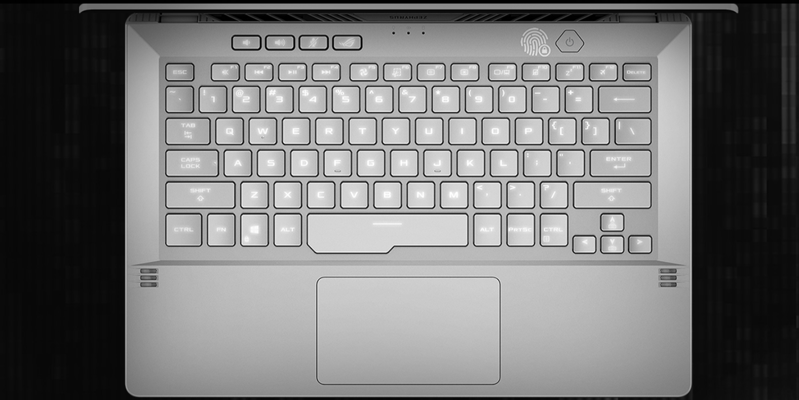 Zephyrus G14 je dodávaný s nekompromisnou klávesnicou, ktorej plná veľkosť sa vojde aj do oveľa menšieho stroja. Ide o prvý notebook ROG, ktorý obsahuje senzor odtlačku prsta na tlačidle napájania, takže prebudenie notebooku sa stáva rovnako jednoduché ako odomknutie telefónu. Vďaka rozvrhnutiu klávesnice inšpirovanej stolným počítačom, doplnenou praktickými klávesovými skratkami, vďaka ktorým máš na dosah hlasitosť, vypnutie zvuku mikrofónu a softvér ROG Armory Crate, sa budeš cítiť ako doma. Technológia Overstroke aktivuje kliknutie klávesu vo vyššej polohe pre rýchlejšiu odozvu a dizajn ErgoLift zdvíha klávesnicu pod uhlom, ktorý robí písanie pohodlnejším než kedykoľvek predtým.