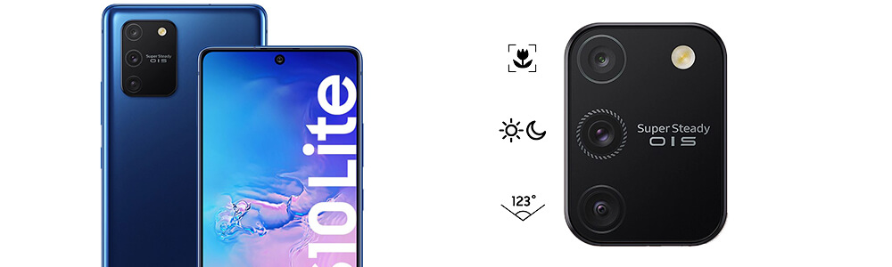 V zadnej časti telefónu Samsung Galaxy S10 Lite dominuje inteligentný fotoaparát, ktorý pozostáva z trojice objektívov. Kombinácia 5Mpx Macro kamery, 48Mpx primárneho objektívu so stabilizáciou Super Steady OIS a 12Mpx ultraširokouhlého snímača vám umožní zachytiť všetko čo je pre vás dôležité.