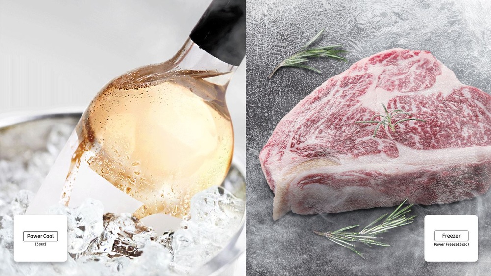Od lahodného bieleho vína cez naložené stejky až po mrazené filety čerstvého lososa. Spoľahnite sa na rýchle schladenie i mrazenie všetkých potravín stlačením jediného tlačidla. To aktivuje funkcie Power Cool a Power Freeze, ktoré začnú fúkať prúd studeného vzduchu do chladničky a začnú ochladzovať, mraziť alebo spevňovať všetky uložené položky. Zmrzlina i ľad vo formách tak budú čo najrýchlejšie pripravené na okamžitú konzumáciu.