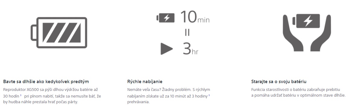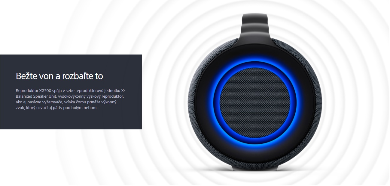 Technológie, ktorými disponuje reproduktor XG500, spolupracujú v dokonalej harmónii a prinášajú kvalitnejší zvuk. Reproduktorová jednotka X-Balanced Speaker Unit ponúka hlboký výrazný basový zvuk a čisté vokály, a to aj pri vysokej hlasitosti. Vysokovýkonný výškový reproduktor prináša čistý a priestranný zvuk vo vysokých frekvenciách. Optimalizované pasívne vyžarovače reprodukujú čistý basový zvuk. Výsledkom je výnimočný zvuk, o ktorý sa treba podeliť so svojimi priateľmi.