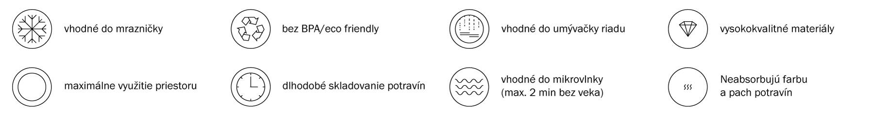 •Praktický obdĺžnikový tvar umožňuje ľahké stohovanie v chladničke alebo skladovanie prázdnych dóz do seba