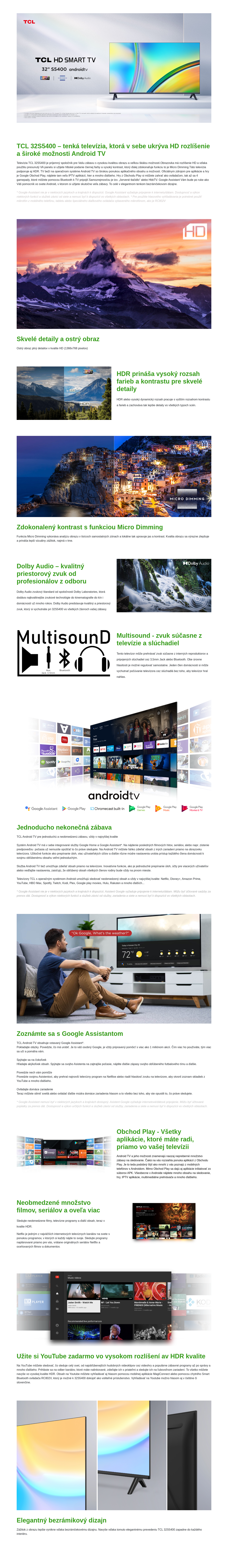 TCL 32S5400A + Sledovanie.tv na 6 mesiacov zadarmo - HD Ready Android LED TV