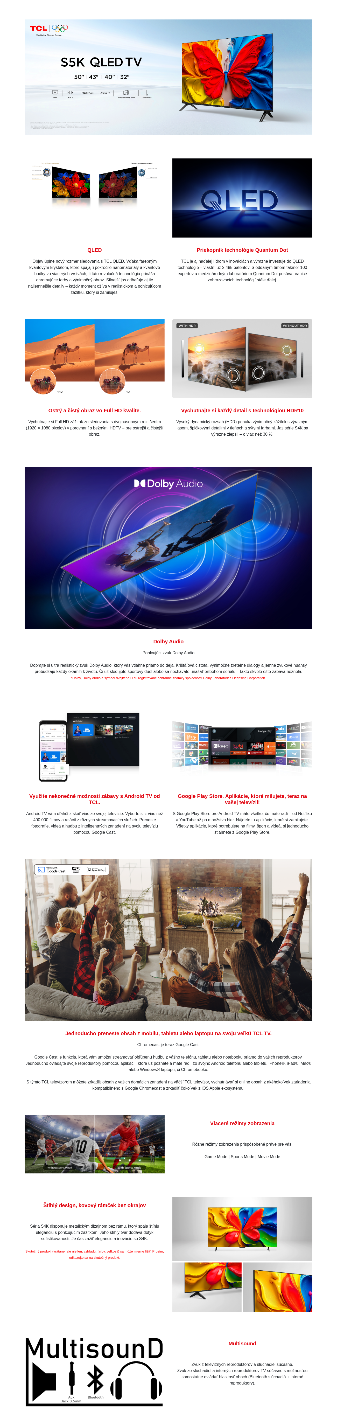 Popis produktu TCL 40S5K + Sledovanie.tv na 6 mesiacov zadarmo