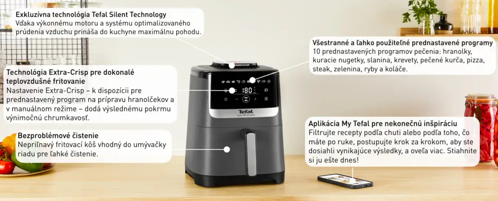 Objavte plný potenciál teplovzdušnej fritézy Easy Fry Silence aplikáciou My Tefal