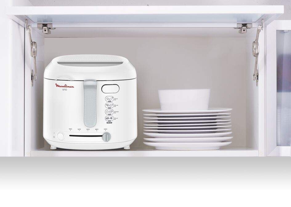 Fritéza Tefal Fry Uno FF203130 v kompaktnom vyhotovení s kapacitou jedla 1kg naraz pripraví pokrm až pre 4 osoby. Pritom je dokonale spratná so sklopiteľnou rúčkou sa vojde kamkoľvek. Vnútro fritézy je výrobne s nepriľnavého povrchu pre uľahčenie varenia a dokonalé výsledky.