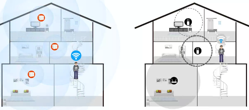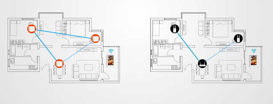 Všetky satelity spolu komunikujú úplne automaticky, stačí len pripojiť hlavný satelit pomocou kábla na Internet, ďalšie satelity len pripojiť k napájaniu. Vďaka indikácii sily signálu od ďalších satelitov presne spoznáte, ktoré umiestnenie ďalšieho satelitu je najlepšie.