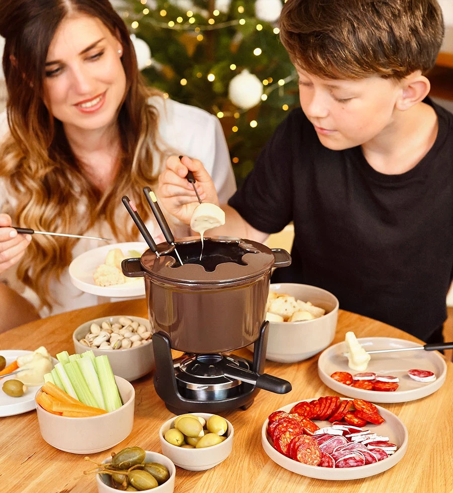 Fondue PARTY TIME je špičková tradičná súprava na prípravu syrového, čokoládového a mäsového fondue až pre 6 osôb.