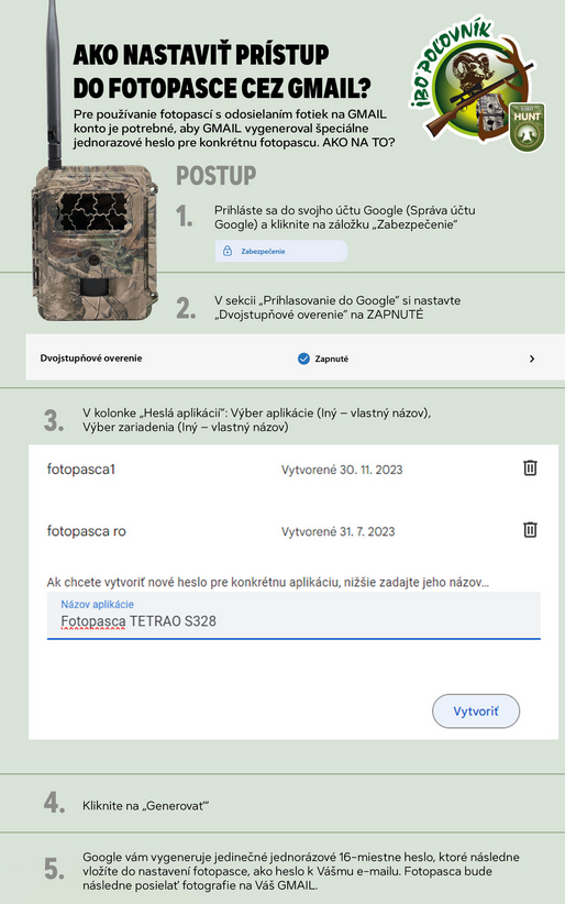 Stručný návod ako nastaviť prístup do fotopasce cez GMAIL: