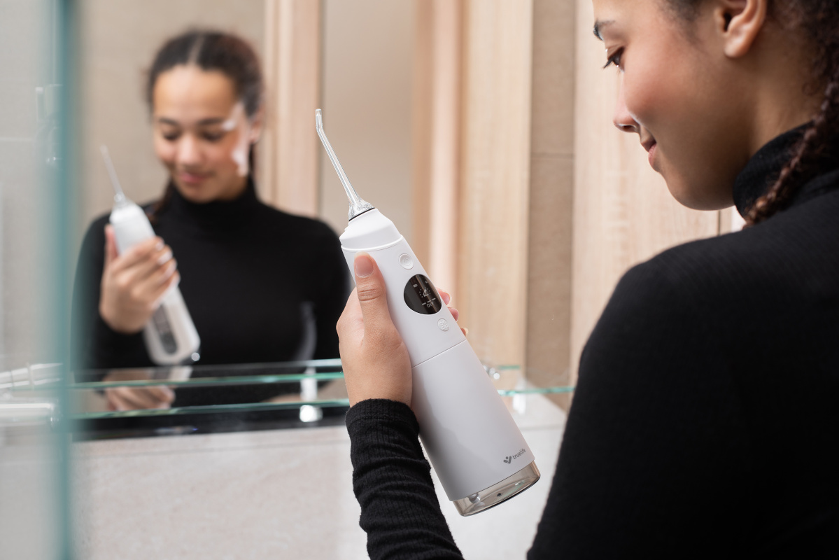 Vďaka kompaktnému dizajnu si ústnu sprchu môžete vziať kamkoľvek so sebou. Na jedno nabitie vydrží batéria 14 dní a nabíjačku tak nemusíte brať so sebou ani na dovolenku. Pre všetky prípady je nabíjací kábel zakončený USB konektorom, sprchu tak môžete nabíjať aj z powerbanky. Ústna sprcha AquaFloss je vybavená časovačom a funkciou Pamäť, ktorá si pamätá naposledy použitý režim. Vďaka funkcii DIY si môžete nastaviť intenzitu tlaku vody presne podľa vašich predstáv a vytvoriť si tak vlastný režim.