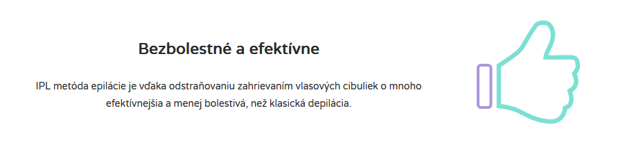Epilácia je vykonávaná pomocou intenzívneho pulzného svetla. Epilátor vydáva jemné impulzy svetla pod povrch pokožky, kde zasahuje melanín vo folikule chĺpku a pomáha tak prerušiť cyklus dorastania chĺpkov. Svetelné impulzy vytvárajú teplo, ktoré vlasovú cibuľku zahreje, tá sa zničí a chĺpky potom samovoľne vypadávajú. Pokožka je už po niekoľko málo použitiach výrazne hladšia. Epilácia všetkých partií vám zaberie len pár minút.