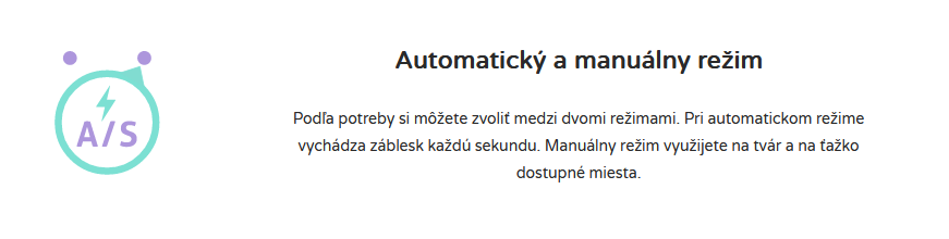 Epilátor TrueLife BELLE IPL E3 ponúka dva režimy. Manuálny režim jednotlivých zábleskov je vhodný k epilácii malých a ťažko dostupných oblastí, ako sú tvár, podpazušie, oblasť bikín alebo členky. S automatickým režimom rýchlo a pohodlne ošetríte väčšie oblasti, napríklad nohy. Akonáhle sa prístroj dotkne epilovanej oblasti, jednoducho podržíte tlačidlo ovládania po dobu 3 sekúnd, epilátor sa prepne do automatického režimu, kedy pri plynulom pohybe po pokožke bude neustále vydávať záblesky.