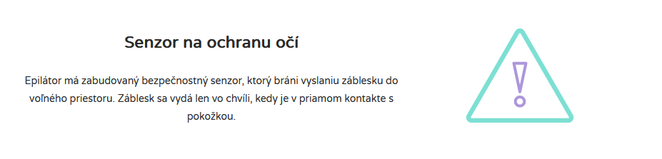 Ak je vaše pokožka veľmi citlivá, nemusíte sa používania epilátora TrueLife BELLE IPL E3 obávať. Vďaka technológii SensCool® prebieha celé ošetrenie úplne bezbolestnou metódou. Mimo to SensCool® stráži teplotu epilátora a akonáhle je prekročená teplota 60 °C, epilátor sa automaticky vypne. Senzor na ochranu očí bráni vyslaniu záblesku, pokiaľ epilátor mieri do voľného priestoru. Epilátor vydá impulz len vo chvíli, kedy je v priamom kontakte s pokožkou.