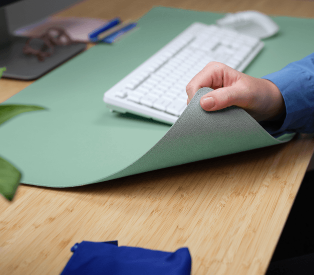 S vegánskym vrchným dielom z PVC kože je táto podložka na stôl etickým riešením. Hladký povrch sa ľahko opracúva a čistí a navyše chráni váš stôl pred zašpinením. Skvelé!