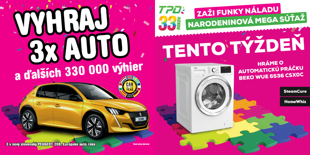 Navyše máš možnosť vyhrať aj jedno z 3 nových áut - Peugeot 208, Európske auto roka 2020.