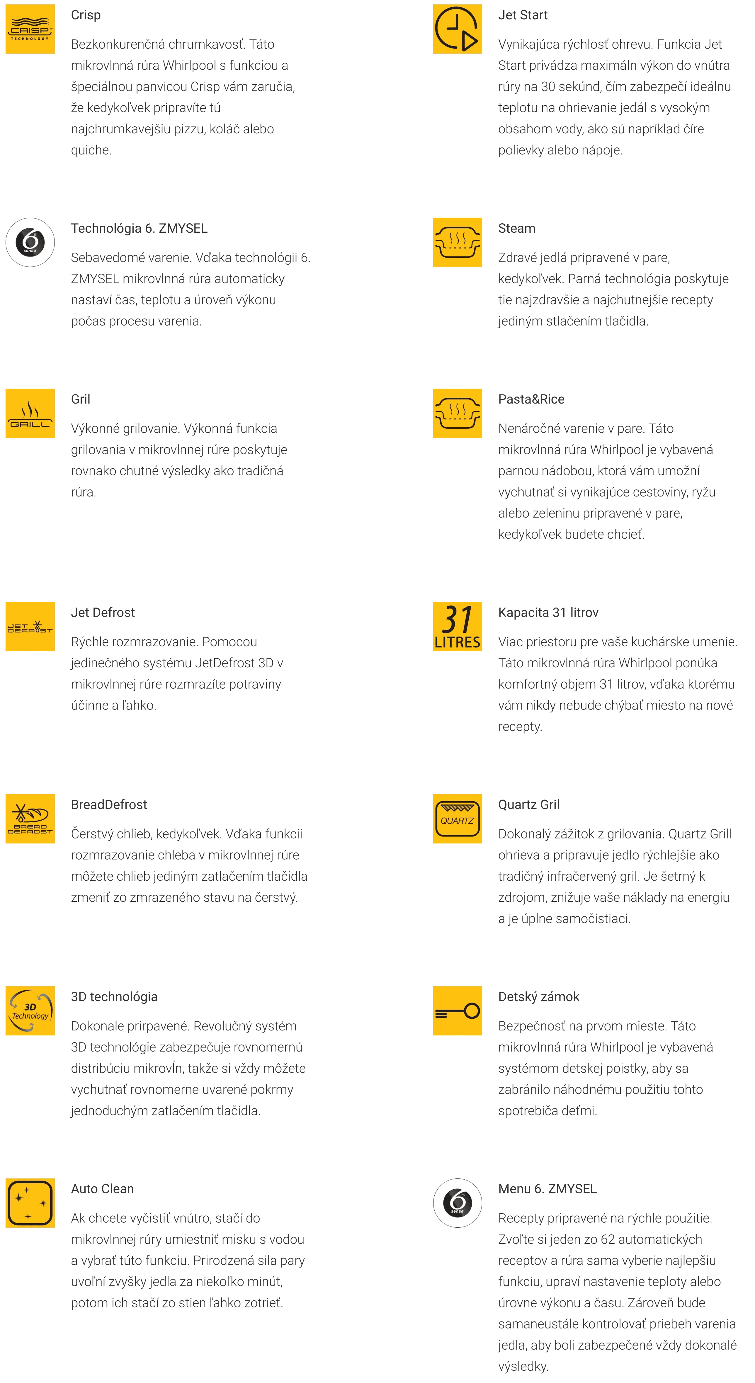 Doprajte si bezproblémové varenie s našou širokou ponukou automatických cyklov. Vďaka možnosti vybrať typ potravín a určiť ich hmotnosť dokáže naša mikrovlnná rúra navrhnúť správne príslušenstvo nad rámec jednoduchého rozsvietenia príslušnej ikony na displeji. Pohodlne sa usaďte a relaxujte, pretože bez námahy nastaví dokonalú funkciu a čas varenia, čím zakaždým zabezpečí výnimočné výsledky. Vďaka až 62 automatickým receptom, ktoré máte na dosah ruky, si môžete vychutnať rozmanité varenie bez akejkoľvek námahy a obáv o konečný výsledok. Objavte svet kulinárskych možností s ľahkosťou a istotou.