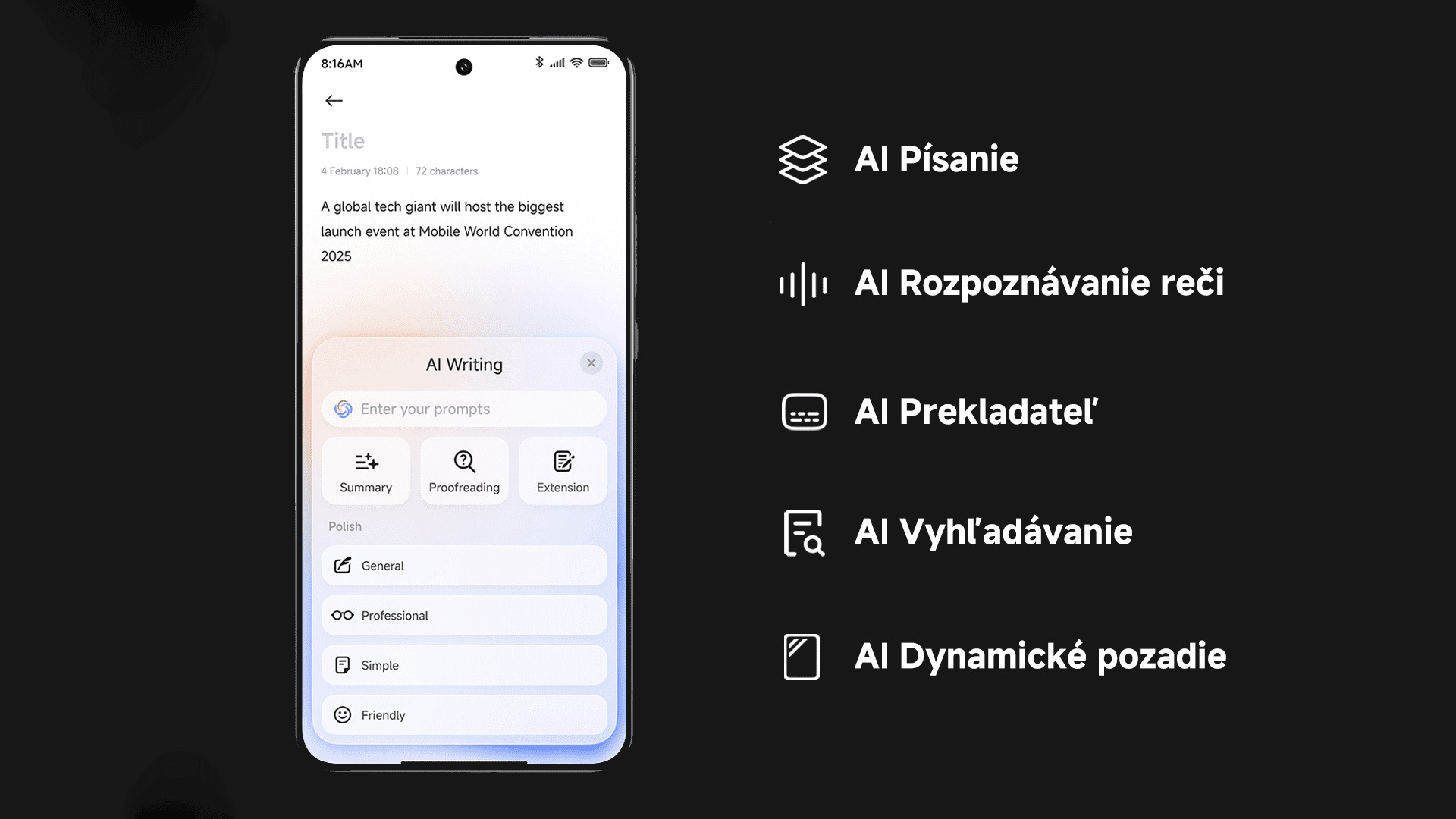 Rozvíjajte svoju kreativitu naplno s AI asistentom. Integruje špičkovú technológiu multimodálneho spracovania Xiaomi a pokročilú AI od spoločnosti Google, ktorá dokáže spracovať text, hlas a obrázky. Získajte pomoc pri písaní, brainstormingu a ďalších činnostiach s AI nástrojmi. Napríklad AI Writing je teraz k dispozícii v celom systéme a môže vám pomôcť so sumarizáciou článkov, organizáciou poznámok, či kontrolou pravopisu pri písaní e-mailov. K dispozícii sú aj ďalšie AI funkcie (AI rozpoznávanie reči, AI prekladateľ, AI vyhľadávanie (Circle to search), AI dynamické pozadia, Prekrytie Gemini, Gemini Live, Generovanie obrázkov).