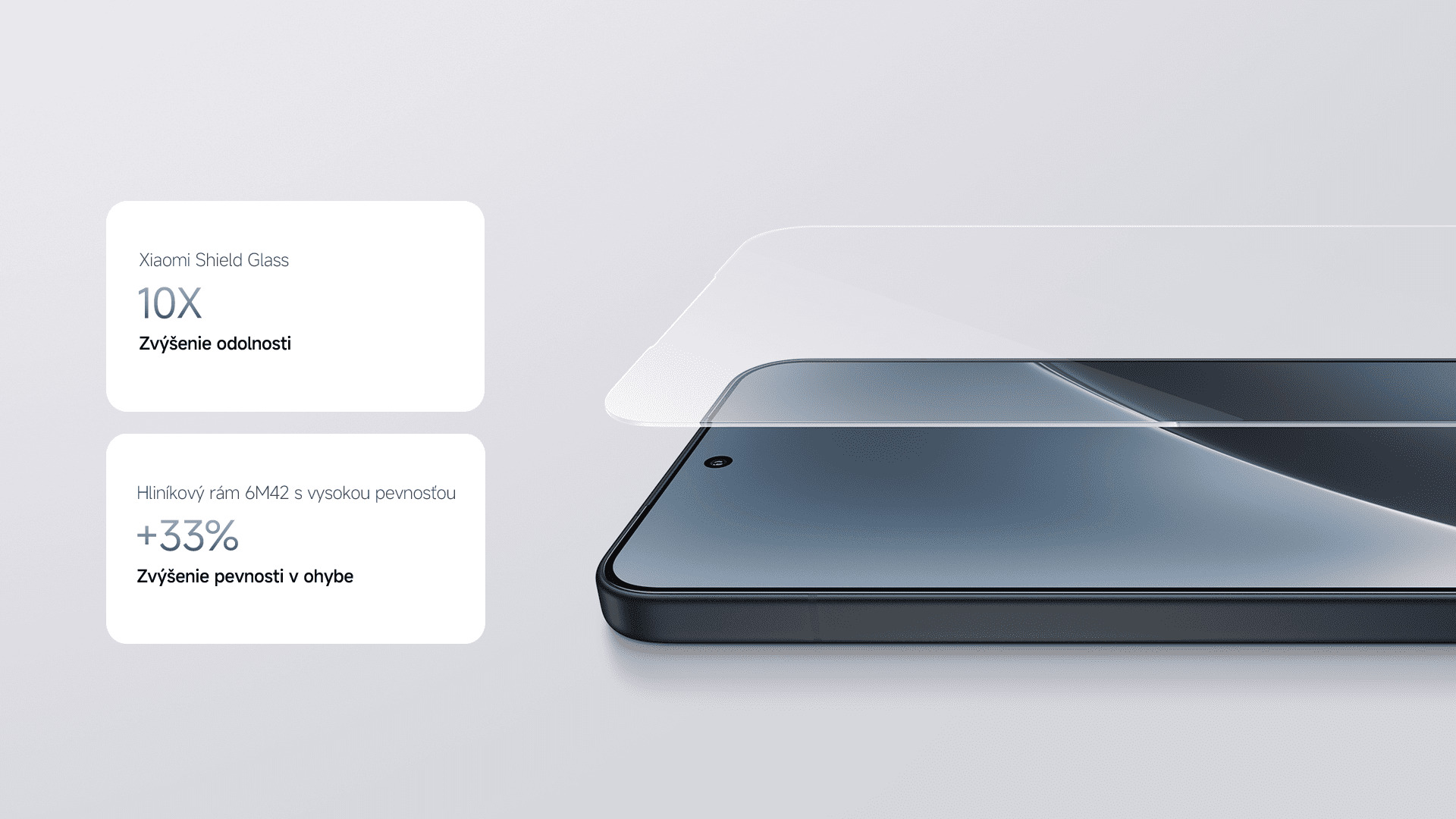 Displej je chránený našim ochranným sklíčkom Xiaomi Shield Glass, ktoré si zachováva vynikajúcu priehľadnosť, zatiaľ čo svojou pevnosťou výrazne prekonáva bežné tvrdené sklo. Okrem odolného skla má Xiaomi 15 aj lepšiu odolnosť rámu voči pádu, použitím prvotriednej hliníkovej zliatiny 6M42 pre väčší pokoj a komfort pri každodennom používaní.