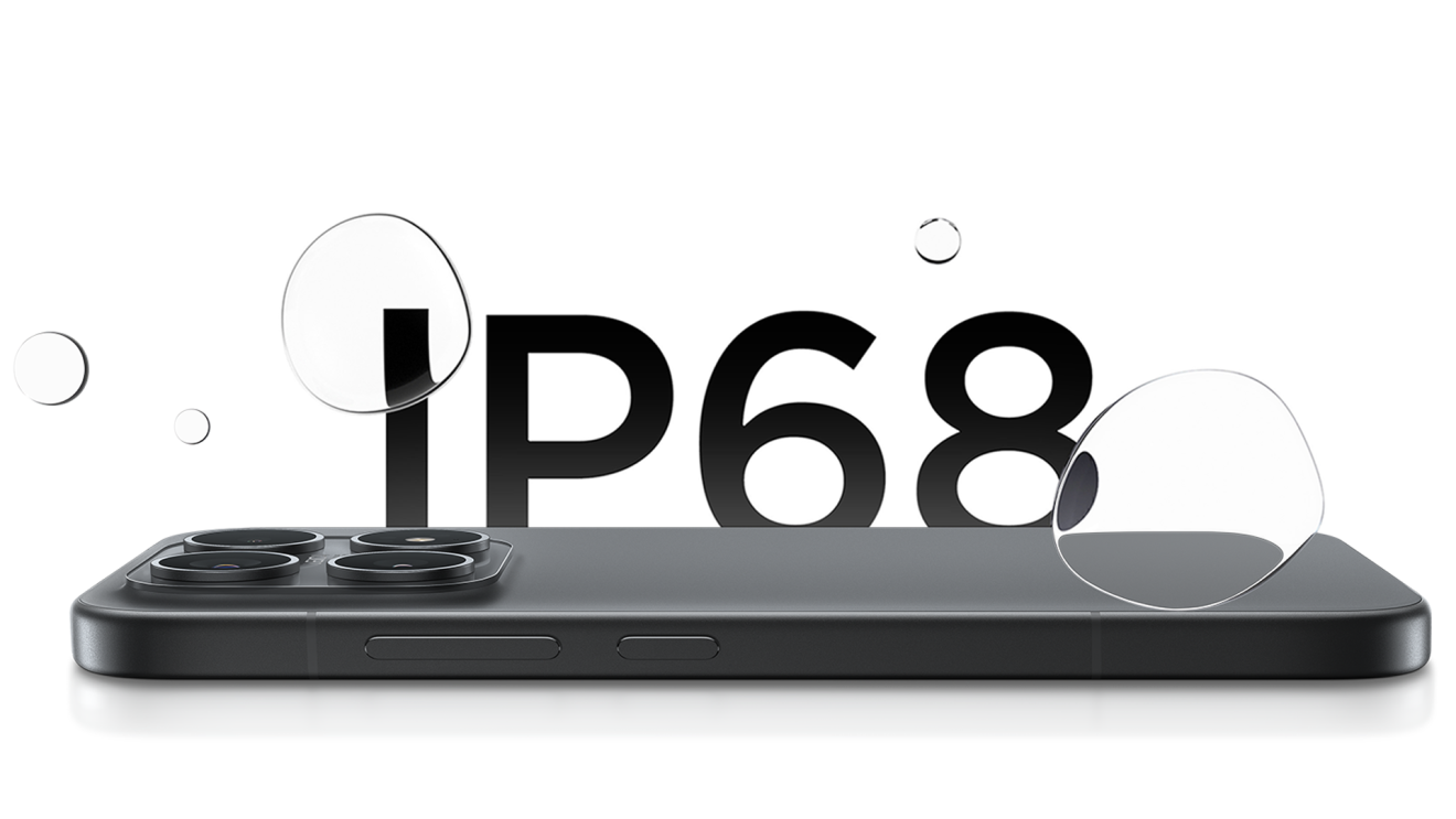 Zariadenie bolo testované a certifikované na odolnosť voči striekajúcej vode, ponoreniu a prachu v laboratórnych podmienkach podľa medzinárodných noriem IEC a EN 60529. Stupeň krytia IP68 v tomto prípade znamená ponorenie do statickej sladkej vody do hĺbky 4 metrov na dobu 30 minút, pričom rozdiel teplôt vody a zariadenia nesmie presiahnuť 5 °C. Odolnosť nie je zaručená v prostrediach mimo testovacích parametrov. Ochrana sa môže časom znížiť v dôsledku bežného opotrebovania, fyzického poškodenia alebo opravy.