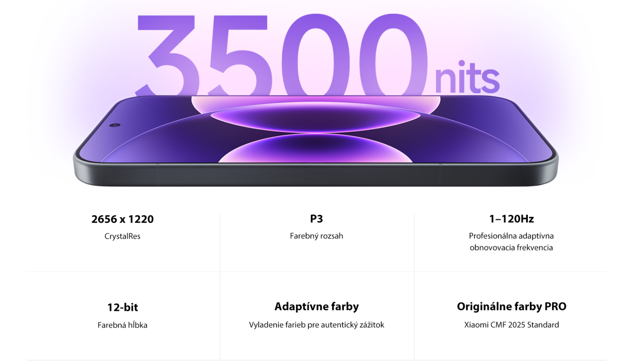Xiaomi 17 dosahuje špičkový jas až 3 500 nitov, čo zaručuje skvelú čitateľnosť displeja a úchvatný HDR zážitok aj na priamom slnku. Displej ponúka rozlíšenie 2656 x 1220, farebnú hĺbku – P3, aj vysokú obnovovaciu frekvenciu od 1 až po 120Hz. Nemôže mu chýbať ani podpora Dolby Vision a HDR 10+. Displej ja chráneným našim vlastným tvrdeným sklom Xiaomi Shield Glass a vybavený je aj ultrazvukovým snímačom odtlačkov prstov pre ultra-rýchle odomykanie telefónu.