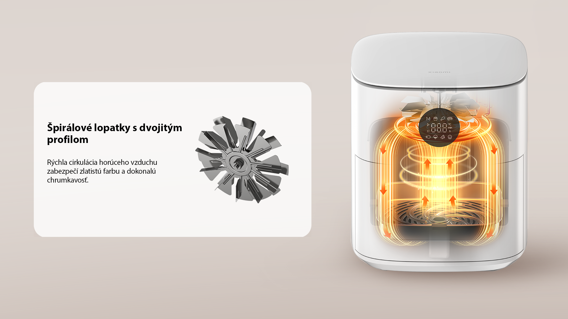 *Fritéza Xiaomi Air Fryer 6.5L pripraví hranolky už za 18 minút. Skracuje tak čas prípravy o 51 % v porovnaní s 20L rúrou, ktorá na rovnaký výsledok potrebuje 37 minút (vrátane predhrievania). Údaje vychádzajú z testov výrobcu.