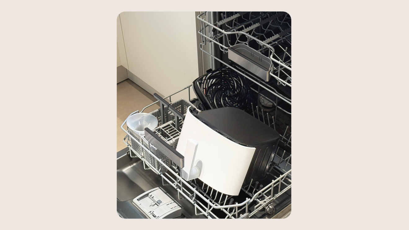 Fritovací kôš a fritovacia platňa sú vyrobené zo zdravotne nezávadného materiálu s nepriľnavým povrchom, ktorý minimalizuje usadzovanie mastnoty. Kôš aj príslušenstvo môžete bez obáv umývať v umývačke riadu, vďaka čomu je aj čistenie po varení úplná hračka.