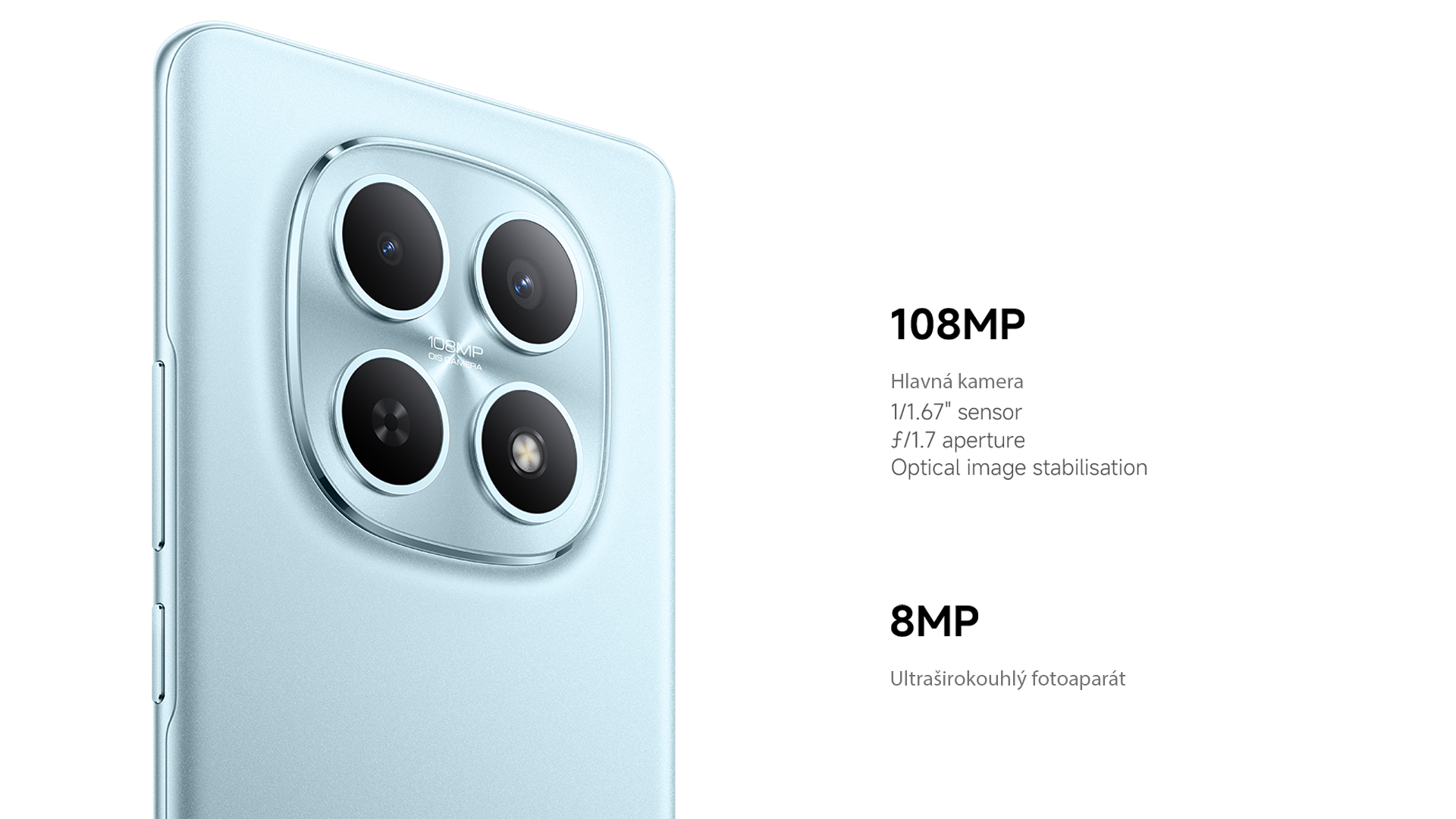 Zachyťte svet v dychberúcom rozlíšení. Hlavný 108 Mpx fotoaparát s optickou stabilizáciou obrazu (OIS) prináša ostré zábery bez rozmazania. Či už fotíte v Ultra HD režime, využívate portrétny mód alebo tvoríte v noci, vaše fotografie budú vždy plné detailov a verných farieb.