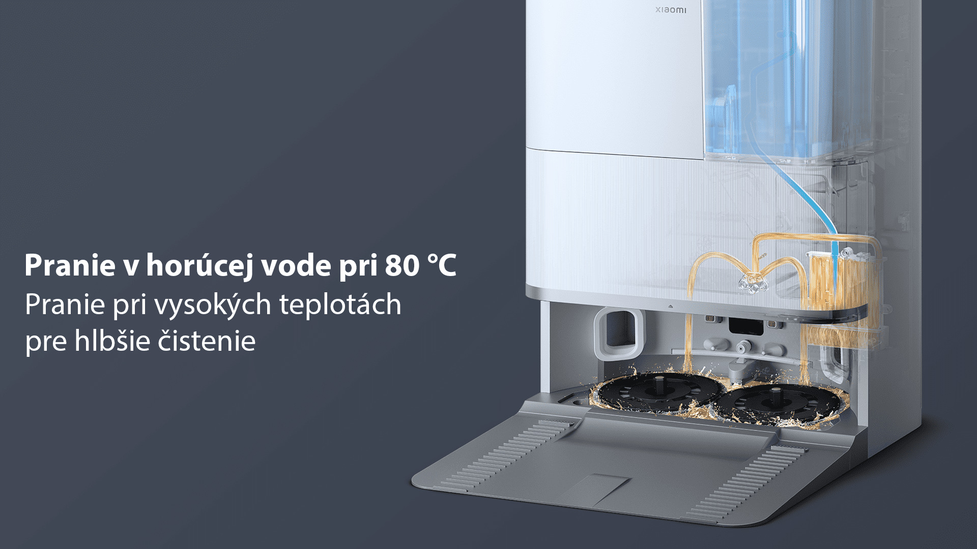 Vylepšená samočistiaca základňa teraz ponúka horúce pranie mopovacích podložiek pri teplote až do 80°C. V kombinácii s vysokorýchlostným odstredivým čistením mopov, odstraňuje nečistoty rýchlejšie a efektívnejšie. Po čistení mopy vyschnú už za 2 hodiny vďaka sušeniu horúcim vzduchom, čím sa znižuje potreba ručného prania alebo sušenia na slnku, ako aj riziko vzniku plesní a nepríjemného zápachu. Veľká 4-litrová nádoba na čistú vodu navyše znižuje potrebu častého dopĺňania, vďaka čomu je ideálna aj na čistenie veľkých domácností. Inteligentne rozpoznáva mieru znečistenia mopovacích podložiek a v prípade silného znečistenia ich automaticky opätovne umyje.
