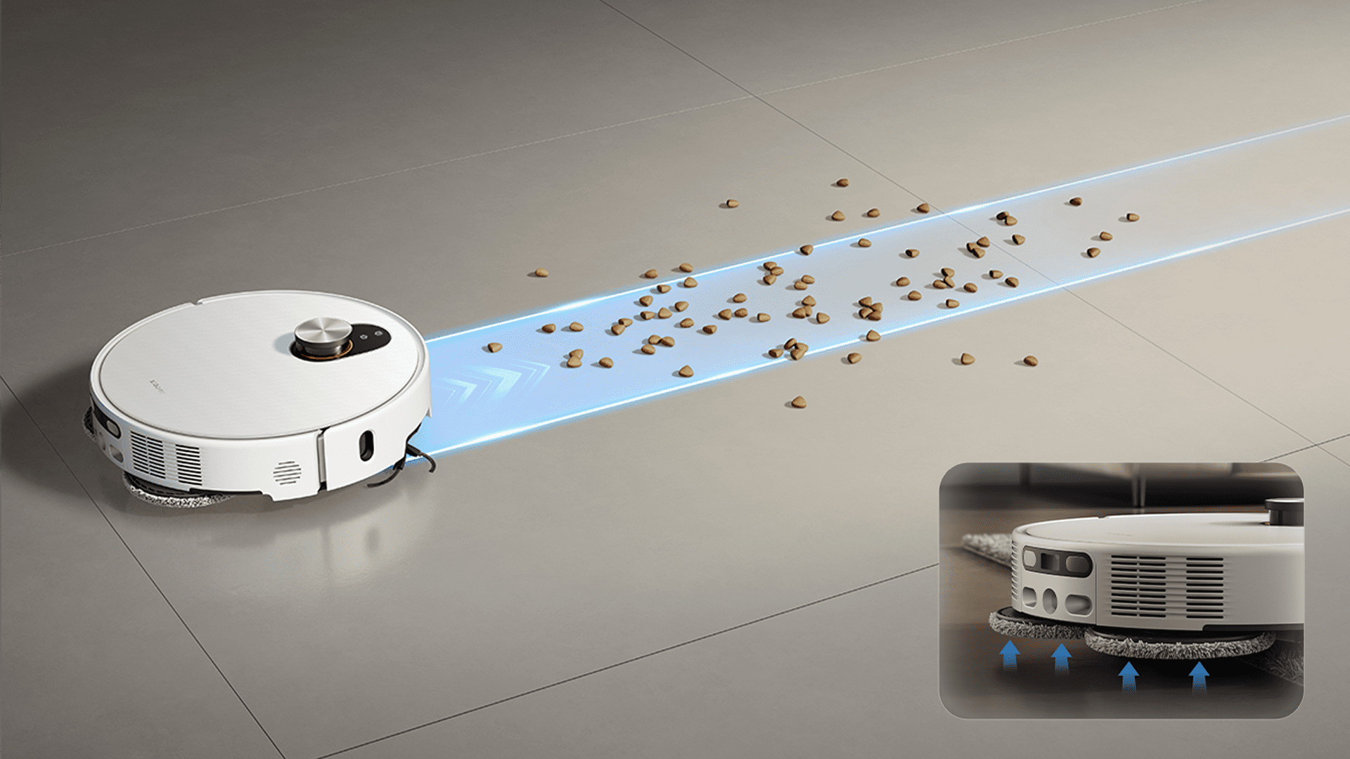 Vysávač navyše dokáže identifikovať typy nečistôt a podľa toho aplikuje vhodnú stratégiu. Keď identifikuje napríklad väčšie pevné častice ako krmivo, automaticky zdvihne mopovacie podložky a aplikuje len režim vysávania.