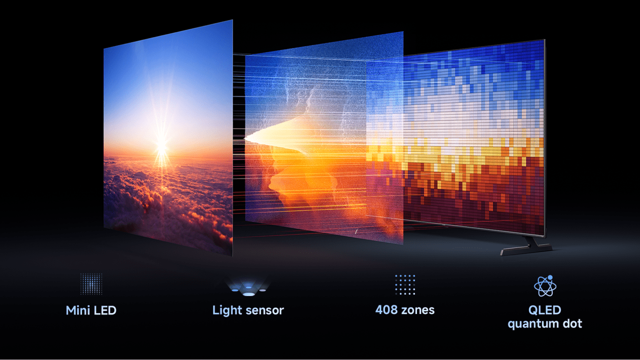 Mini LED delí obrazovku na množstvo nezávislých zón podsvietenia, čo umožňuje precíznu kontrolu jasu a tmy v každej časti obrazu. Displej je vybavený svetelným senzorom, ktorý automaticky upravuje jas v reálnom čase podľa okolitého osvetlenia. Funkcia HDR ambient adaptive mapping zvyšuje jas a hĺbku obrazu pre živšie farby a jasnejšie tmavé scény, ktoré odhalia každý úchvatný detail.