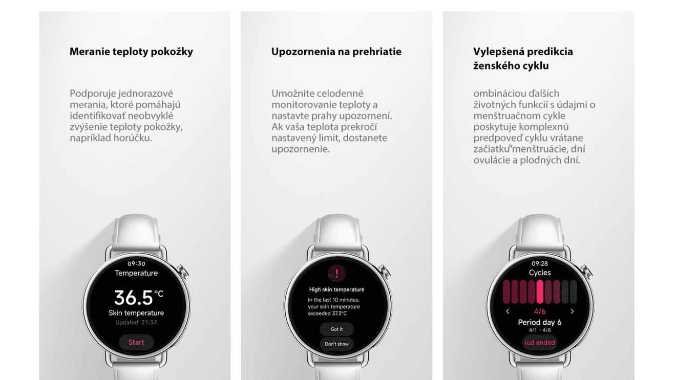 Vybavené vysoko presným kontaktným snímačom teploty, dokážu detegovať zmeny už od 0,1 °C, čo vám umožňuje nepretržite monitorovať teplotu pokožky a sledovať trendy v priebehu času.