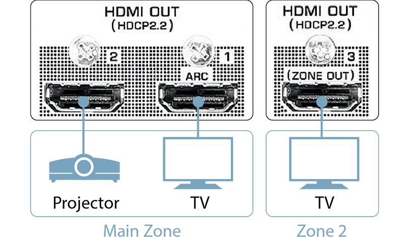 Video alebo zvukový obsah môžete prenášať do televízora alebo do systému domáceho kina v inej miestnosti (Zóna 2) prostredníctvom rozhrania HDMI. Môžete si vychutnať prezeranie a počúvanie toho istého obsahu v hlavnej miestnosti (kde je nainštalovaný AV prijímač), alebo aj iný obsah.